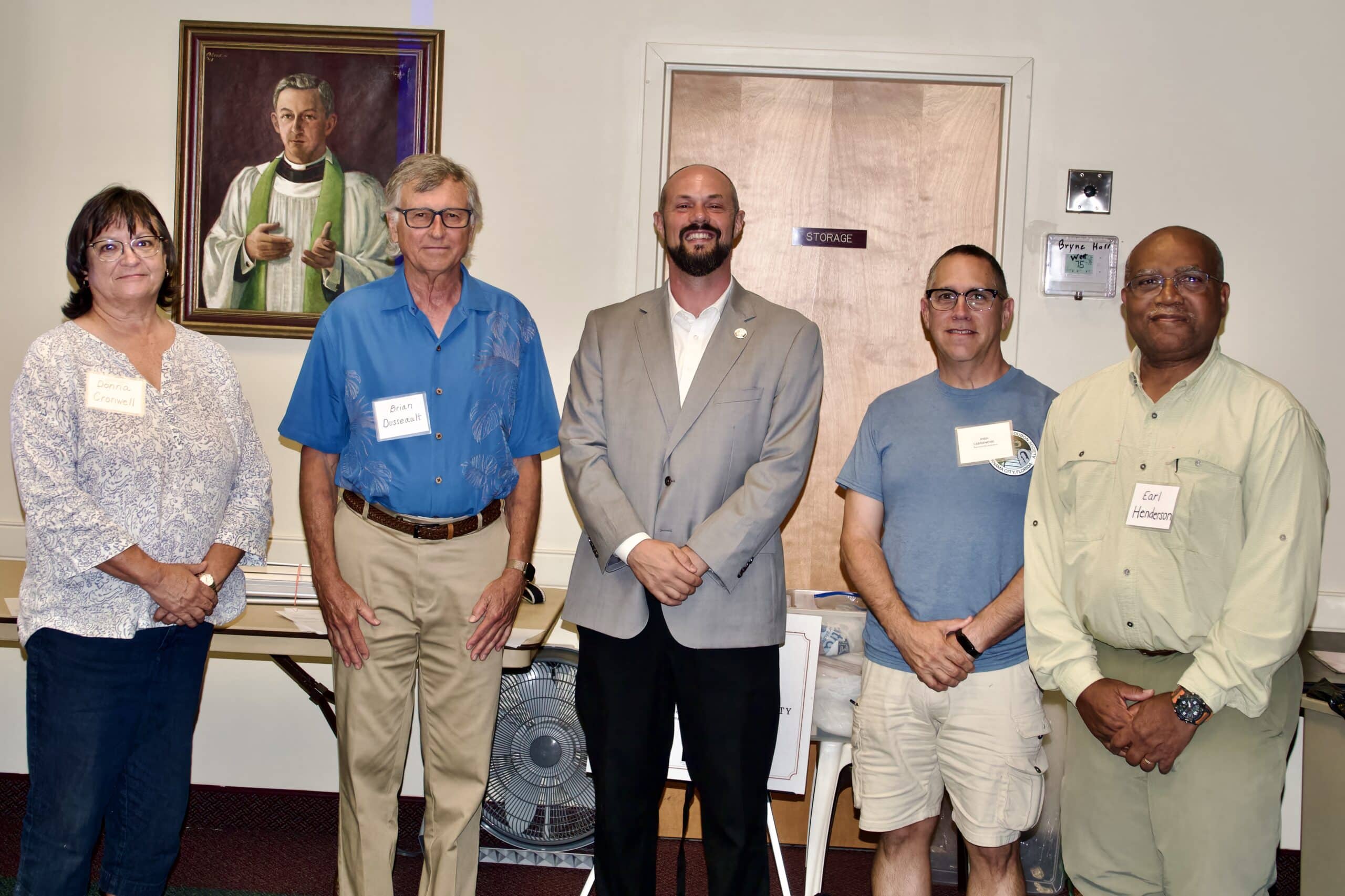 2025-26 Officers from left; Donna Cronwell (Treasurer), Brian Dusseault (President), Mayor, Stuart Tettemer, Joceylyn,LeBranche, (Secretary) Earl Henderson (Vice-President). Mayor Stuart Tettemer, City of Panama City Beach performed the installation.
