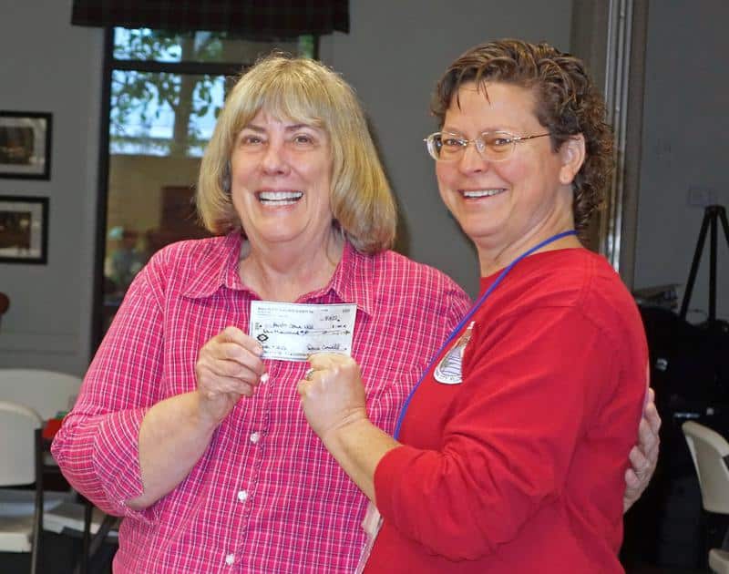 Norman Capra, Chairperson of the Bay County Audubon Society proudly presents the Conservationist of the Year award to Nancy Evou.