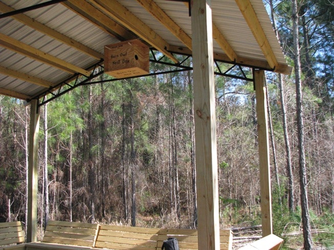 An Eagle Scout Project and another Boy Scout Project by Troop 562 of Santa Rosa Beach, FL provided benches for the shelter and an outstanding photography blind overlooking the central bog and beaver pond. The trails and points of interest are sign-posted and mapped for use. Management strategies include clearing old man-made trails and game trails to allow easier access while at the same time maintaining more of the edge habitat that supports the species richness of the property.