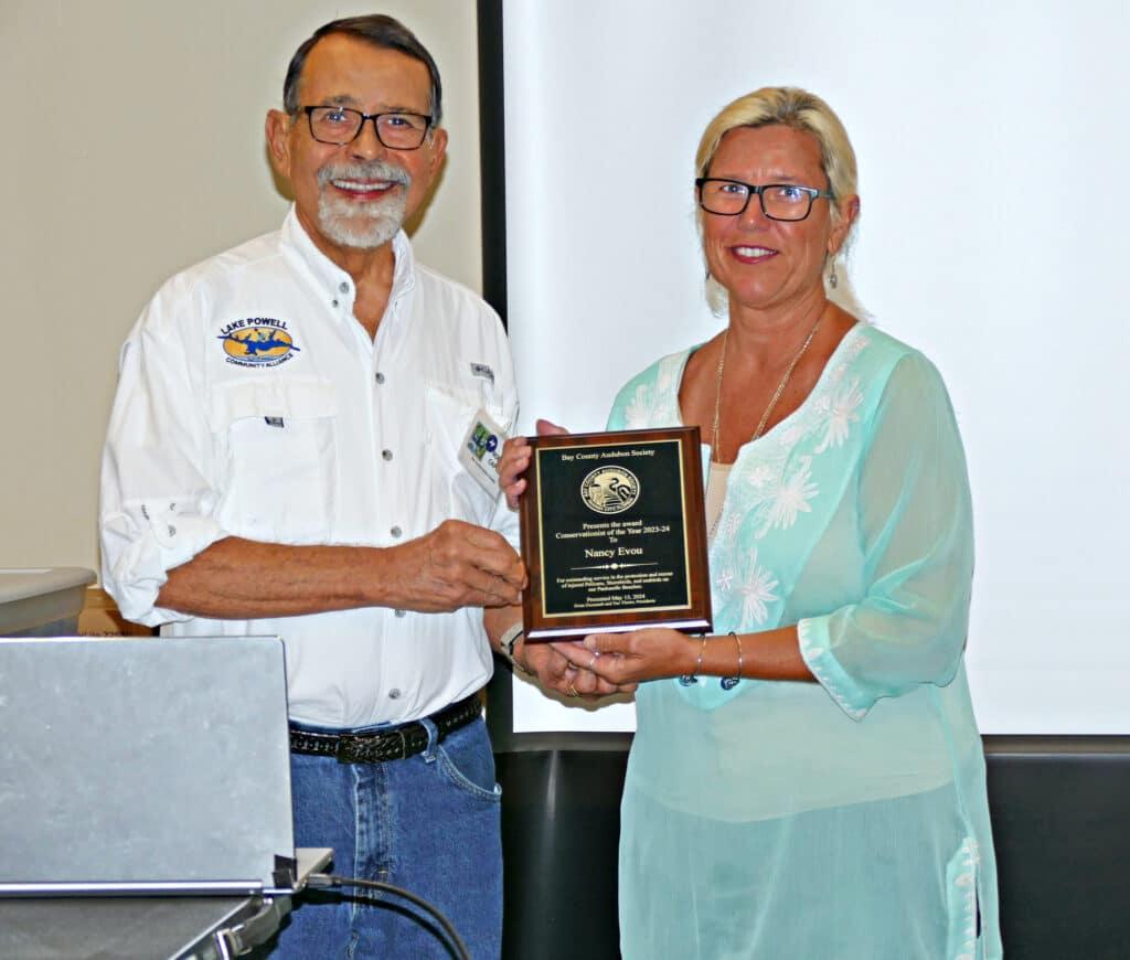 Nancy Evou was presented the Bay County Audubon Society’s 2024 Conservationist of the Year Award at our September 9th membership meeting.